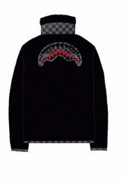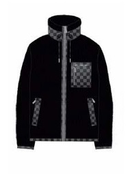 Giacca "Checkered Teddy" Nera in Pile con Dettagli a Scacchi