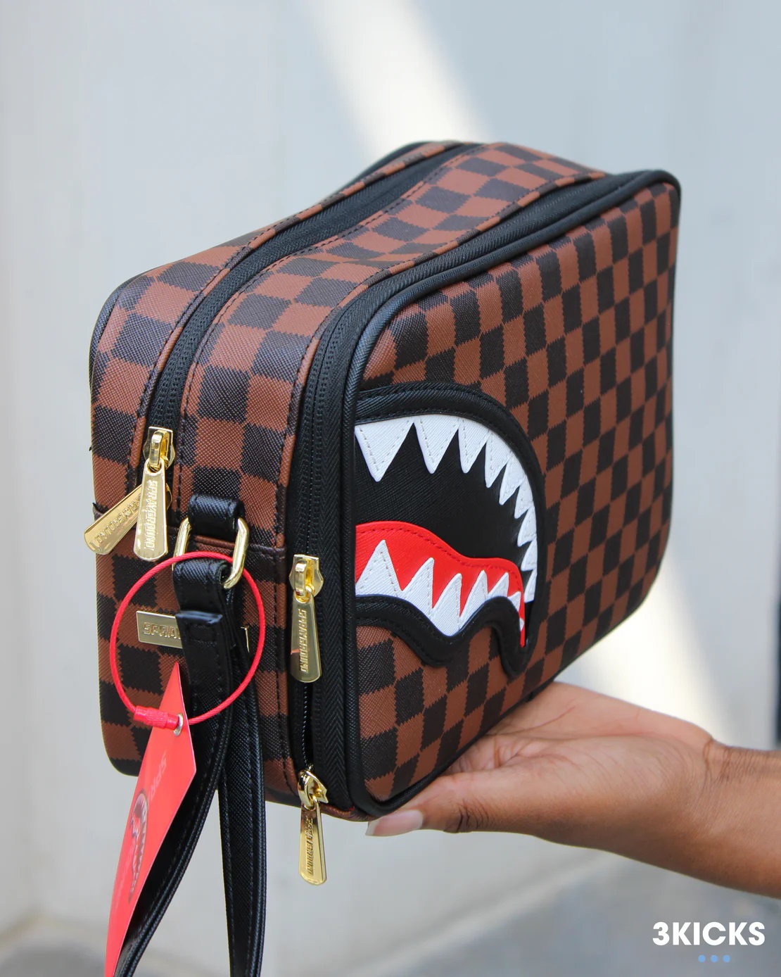 Pochette Sawtooth Sharks in Paris Marrone con Motivo Damier SPRAYGROUND | Pochette | B7840CAMPIONE