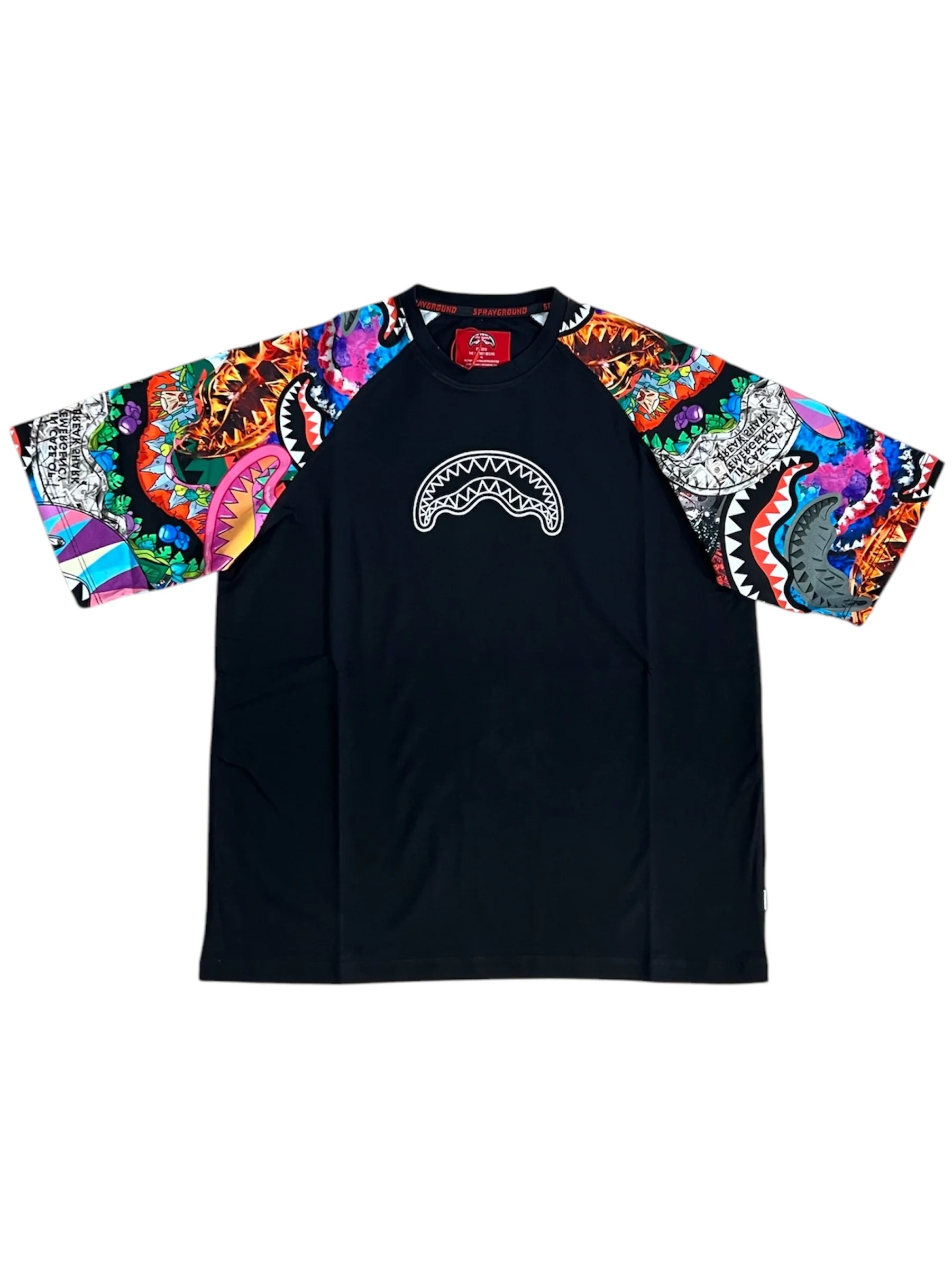 T-shirt All The Shark Raglan Nera con Maniche Over a Fantasia SPRAYGROUND | T-shirt | SP702BLK