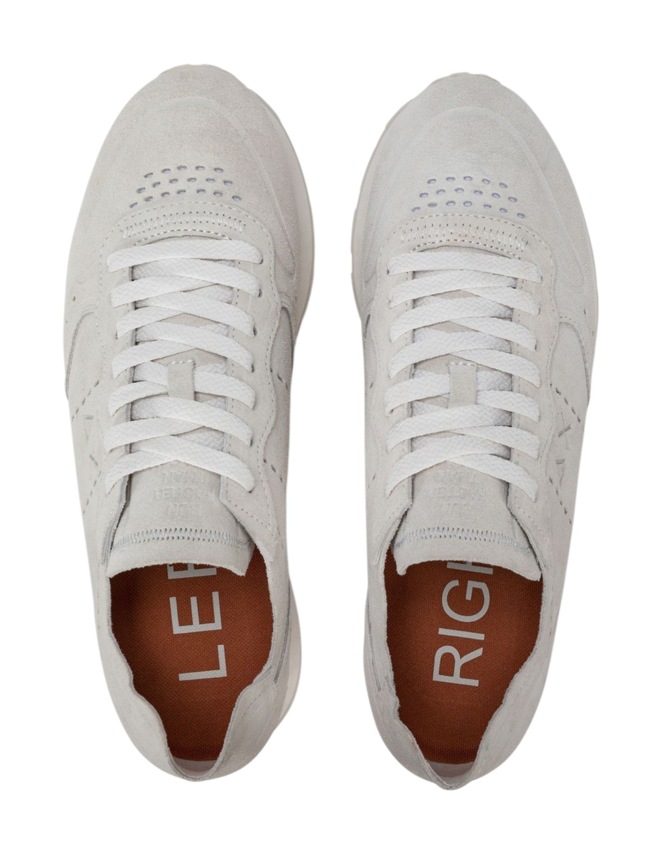 Sneakers da uomo con finiture a taglio vivo stile running. Realizzate in pelle scamosciata con logo ricamato laterale. Dotate di chiusura con lacci e suola in gomma. Altezza suola di circa 3 cm.