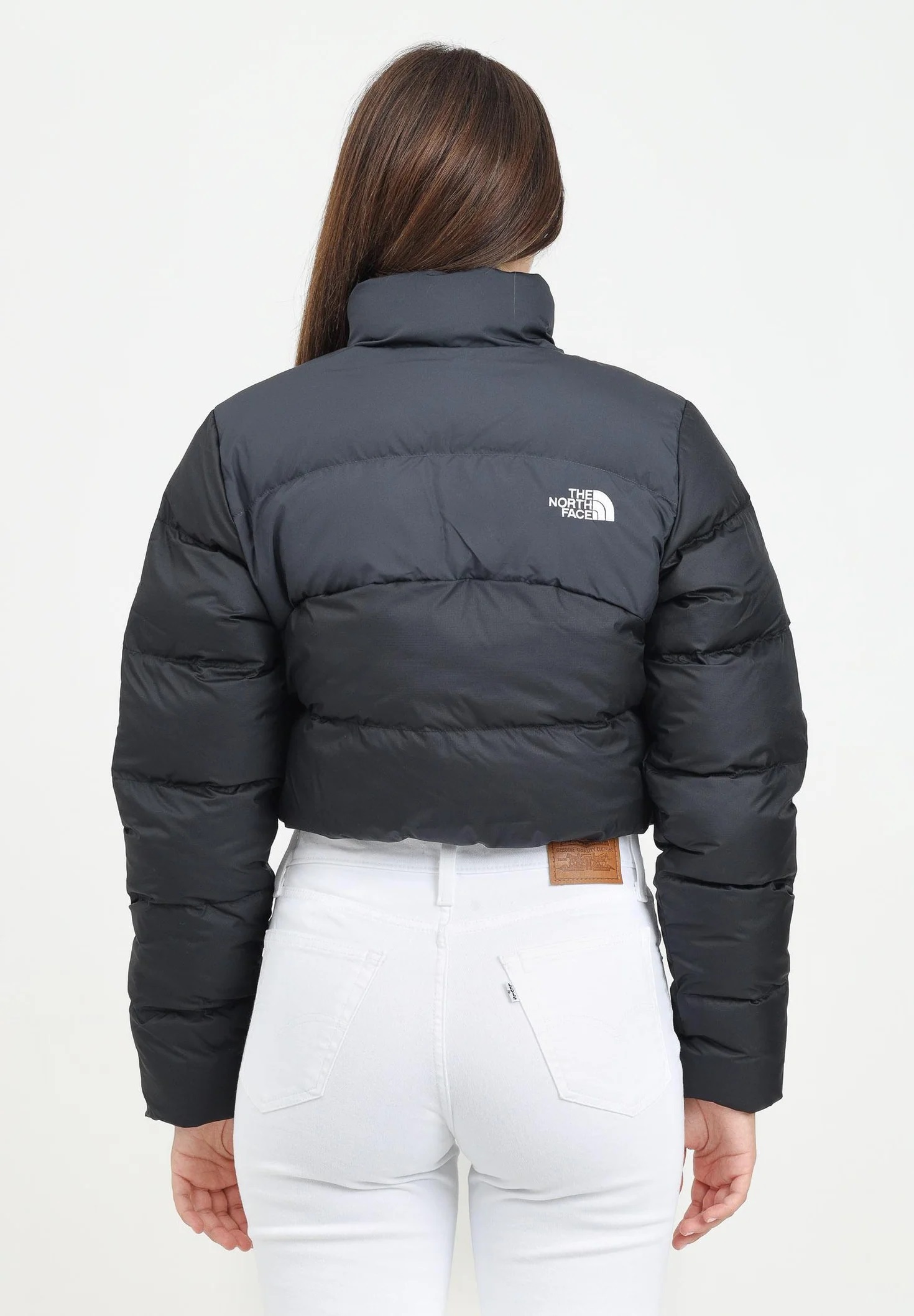 Giubbino corto da donna "Saikuru" nero firmato The North Face, con imbottitura sintetica e finiture idrorepellenti prive di PFC. Il modello presenta una chiusura con cerniera integrale, collo oversize e due tasche laterali con zip per le mani, oltre a una pratica tasca interna. Il taglio corto e la silhouette moderna lo rendono ideale per un look urbano e funzionale nelle giornate fredde.