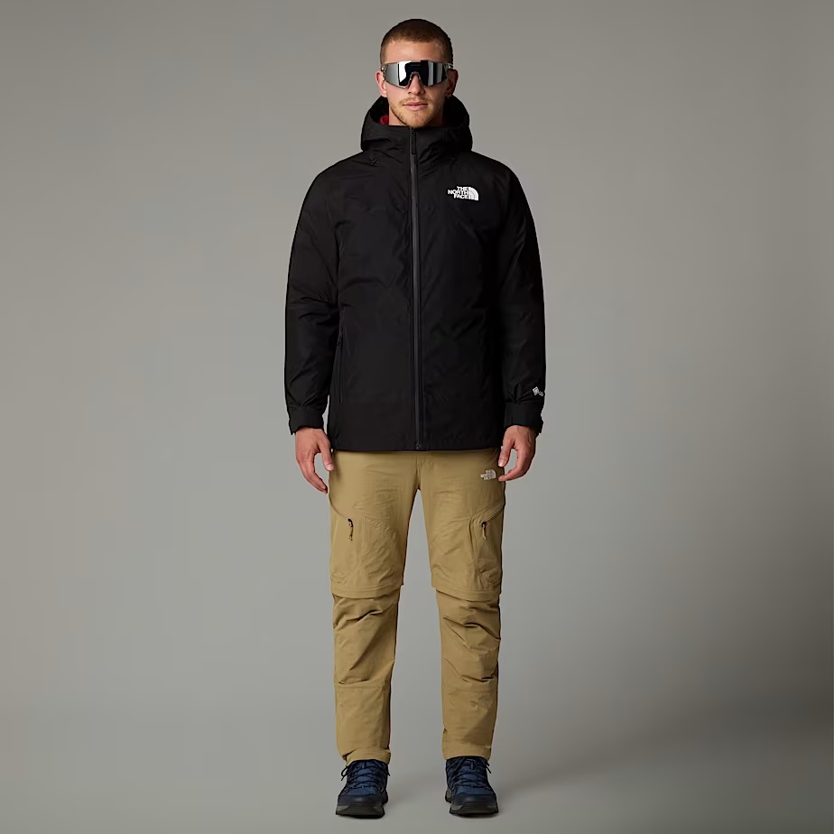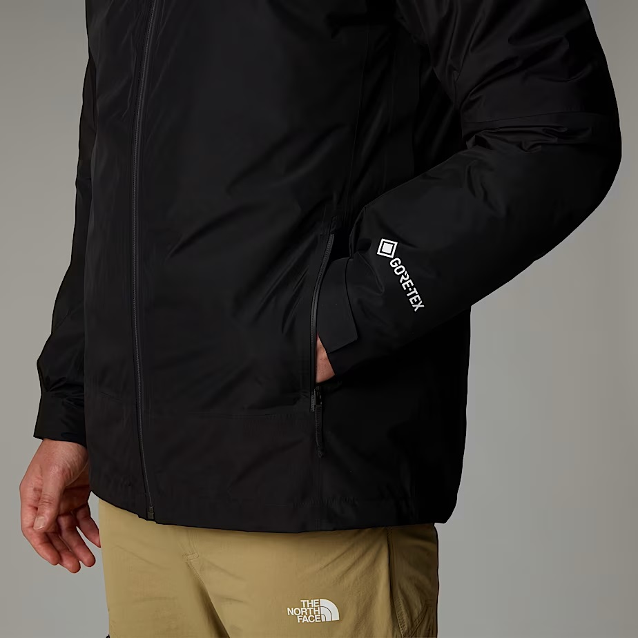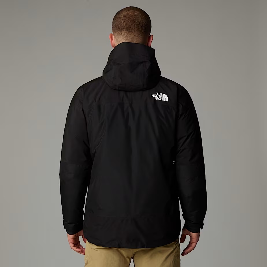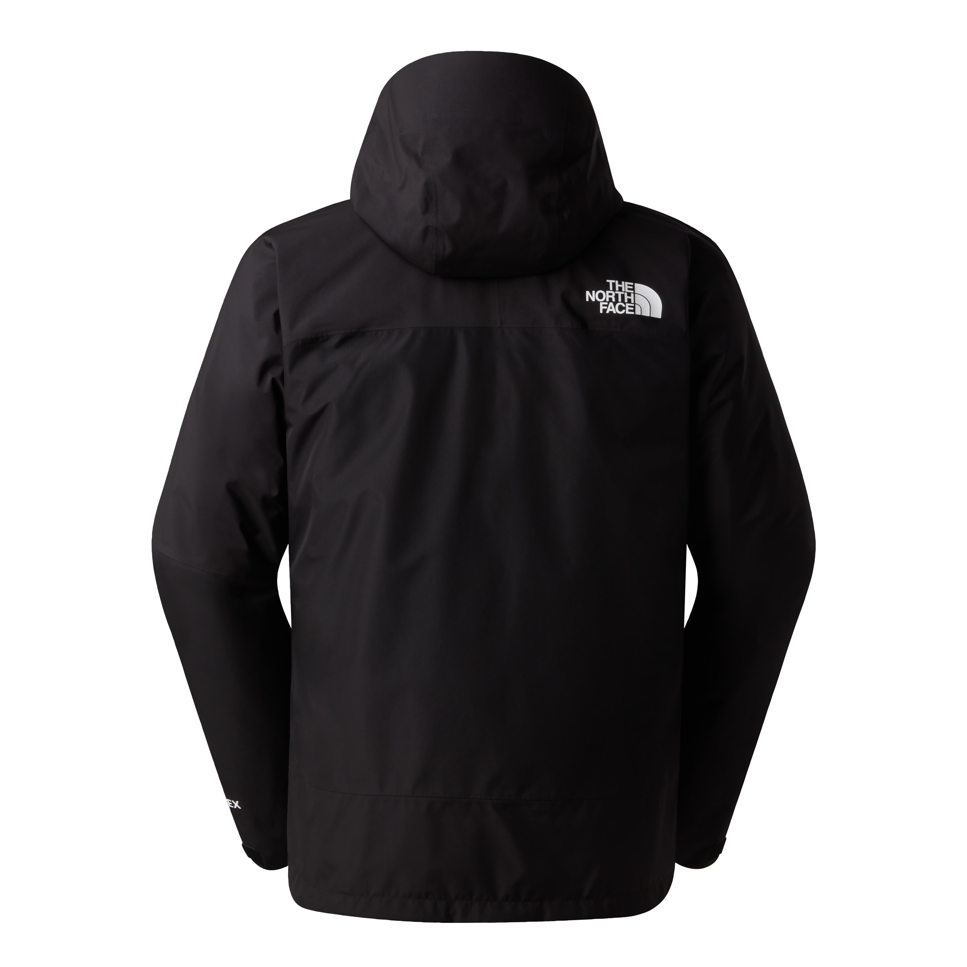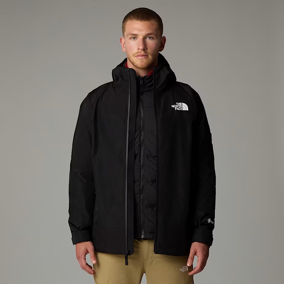 Giubbino nero "Mountain Light Triclimate GTX Jacket" The North Face da uomo, modello 3-in-1 progettato per affrontare qualsiasi condizione climatica. La giacca esterna è realizzata in resistente tessuto GORE-TEX® a due strati impermeabile, antivento e traspirante, con cappuccio fisso regolabile, cuciture nastrate, cerniere di ventilazione e finitura idrorepellente DWR senza PFC. La giacca interna, imbottita in piumino doca 550 di provenienza responsabile, offre calore e leggerezza. Indossabili insieme o separatamente, garantiscono protezione da pioggia, vento, neve e freddo invernale. Design a blocchi di colore ispirato al modello originale del 1985, rivisitato in chiave contemporanea.