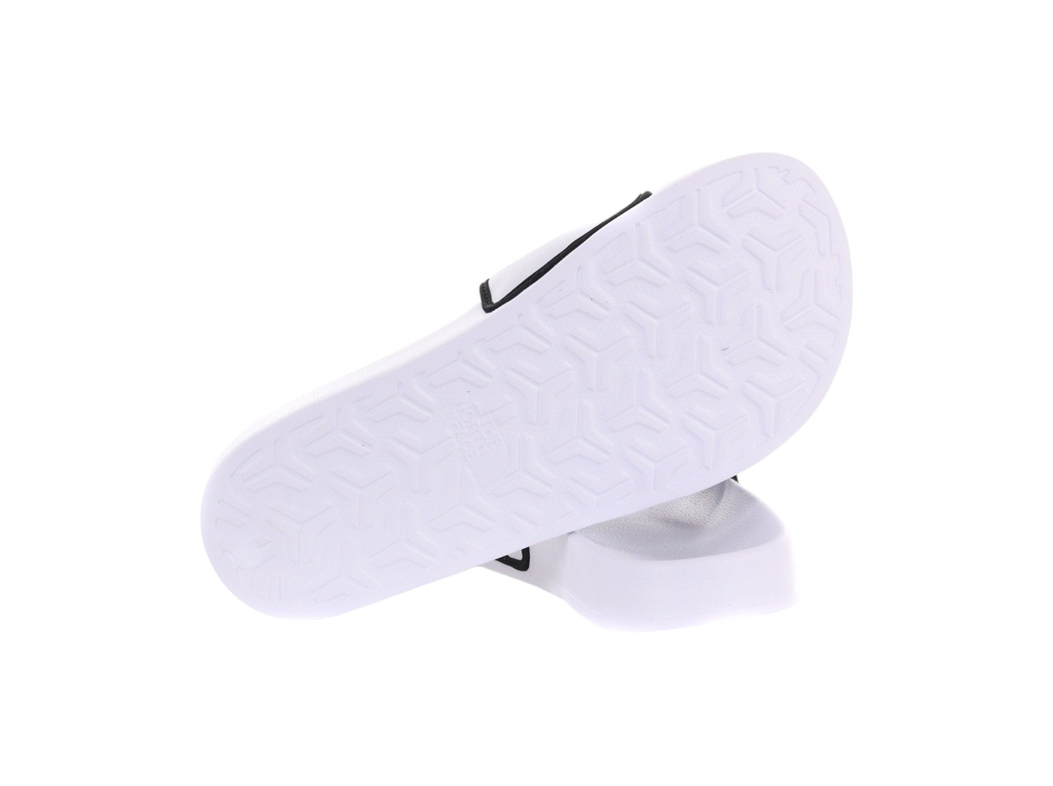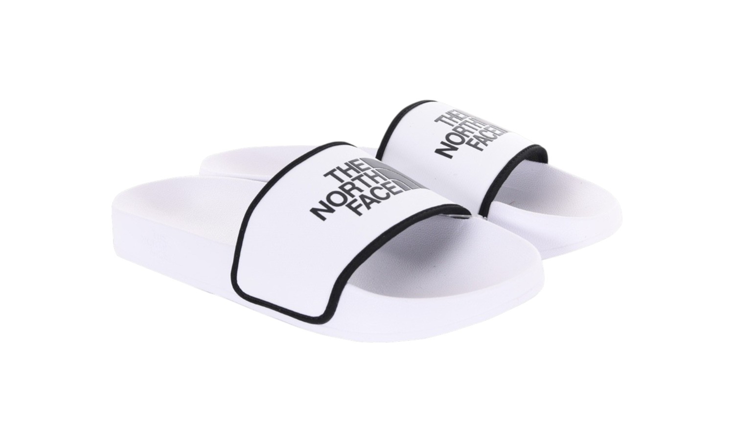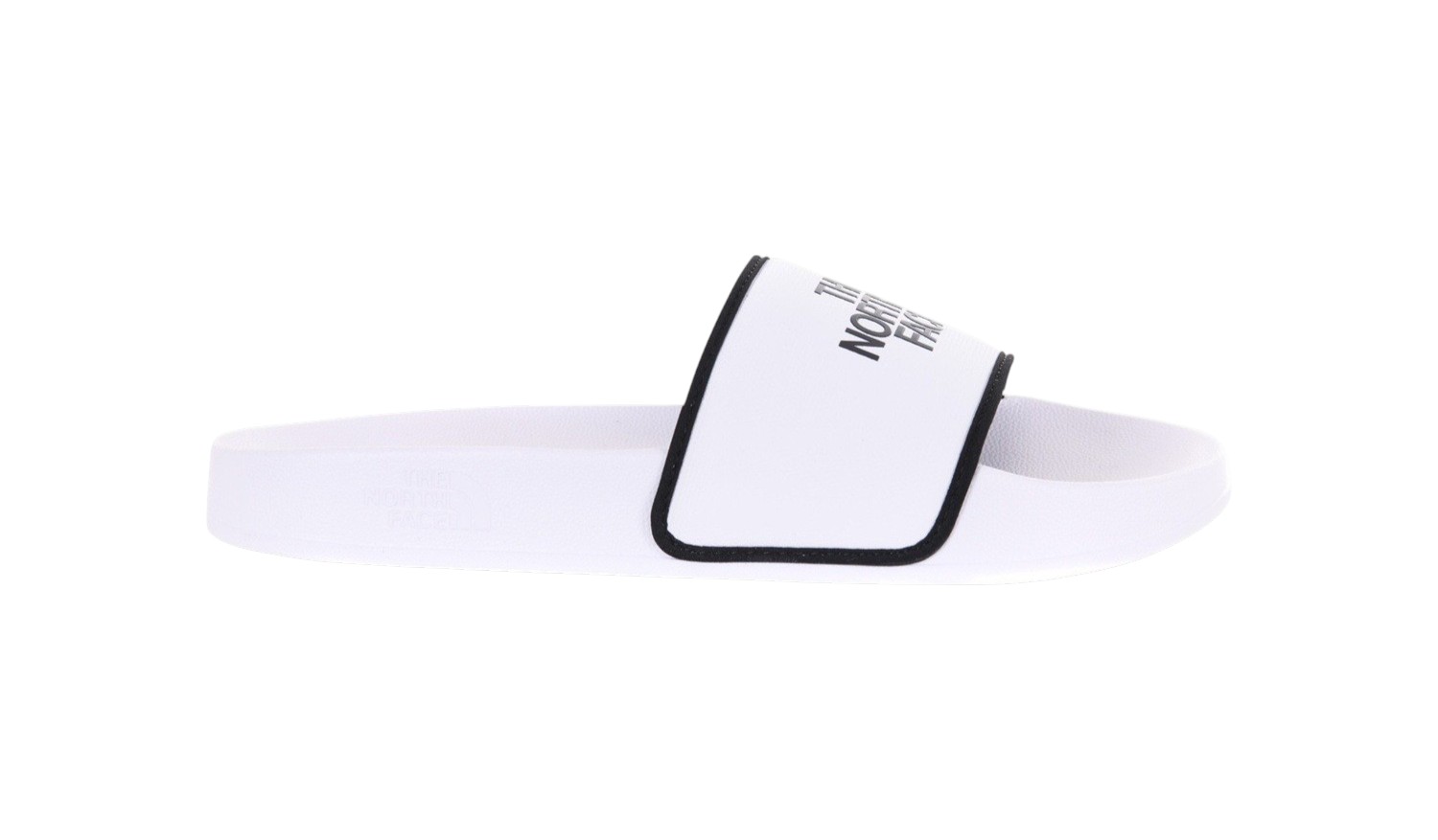 Ciabatte The North Face in nylon bianco con fascia frontale con logo e profili a contrasto. Plantare in ecopelle sagomato. Profilo leggermente rialzato. Altezza suola 2 cm.