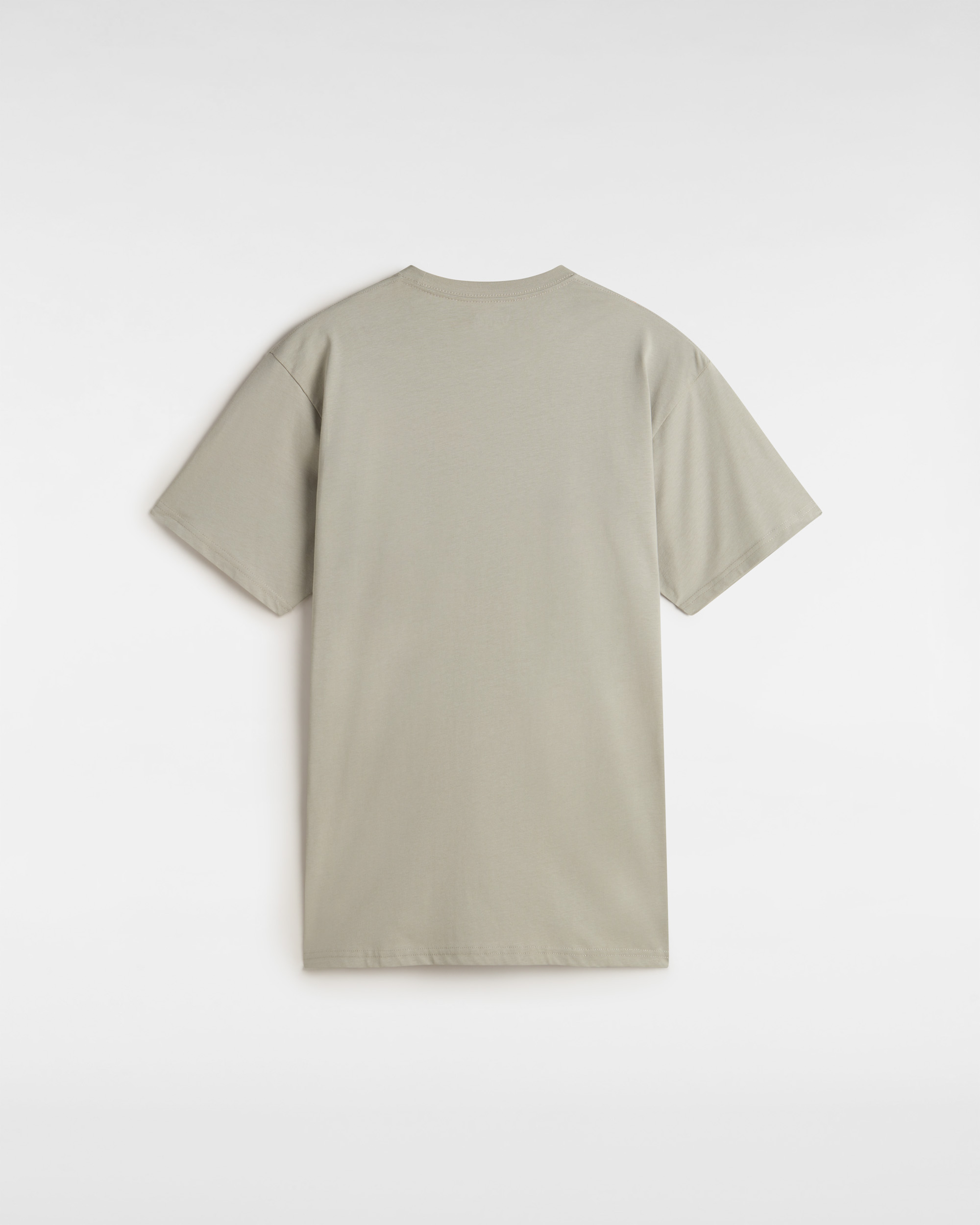 T-shirt beige da uomo con girocollo e maniche corte. Logo Vans bianco stampato sul petto a sinistra. Vestibilità classica, realizzata in cotone leggero e traspirante.